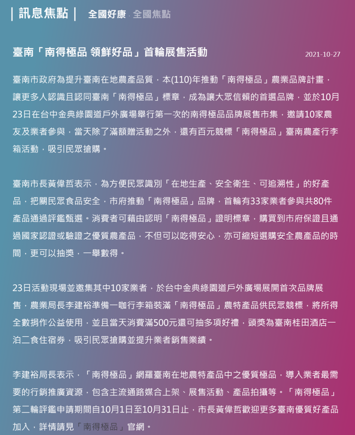 臺南 「南得極品 領鮮好品」 首輪展售活動